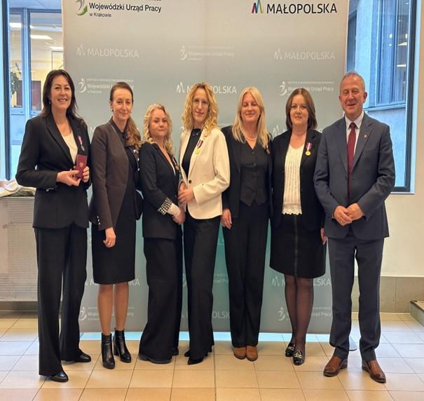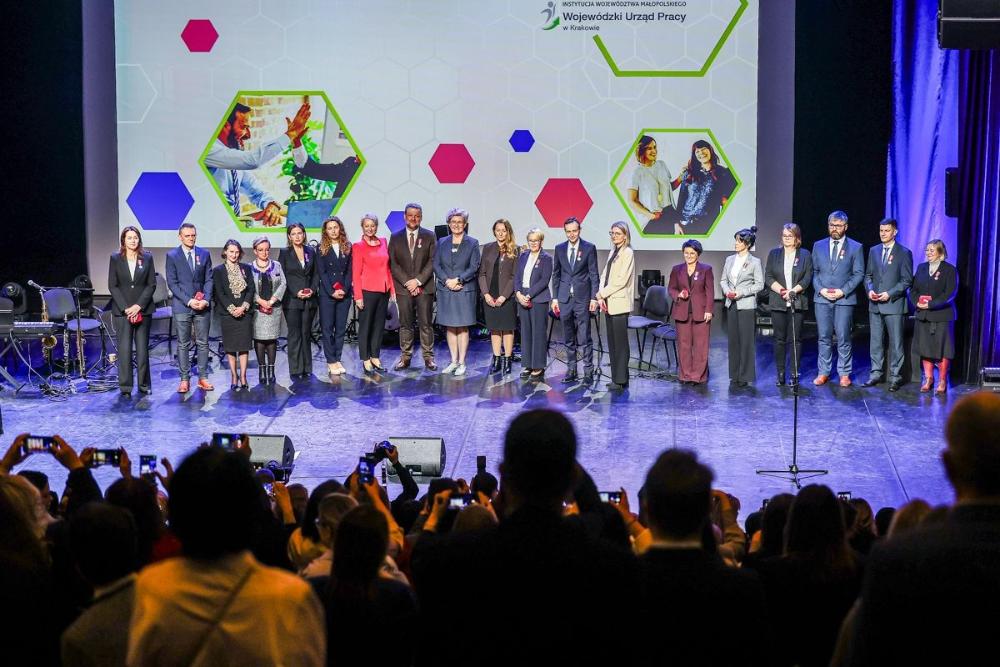 Podczas uroczystości I Wicewojewoda Małopolska – Elżbieta Achinger oraz Iwona Gibas z Zarządu Województwa wręczyły najbardziej zasłużonym pracownikom publicznych służb zatrudnienia odznaczenia państwowe nadane przez Prezydenta Rzeczypospolitej Polskiej. W wydarzeniu uczestniczyli m.in. Iwona Gibas, członkini Zarządu Województwa Małopolskiego, oraz Arkadiusz Psica, dyrektor Wojewódzkiego Urzędu Pracy w Krakowie.